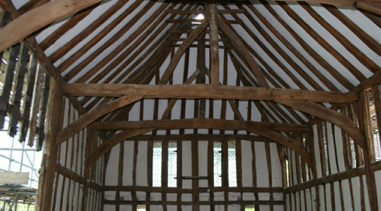 ‘The barn retains much authenticity, including exposed brick walls, oak beams and a traditional wooden-frame arched ceiling.’