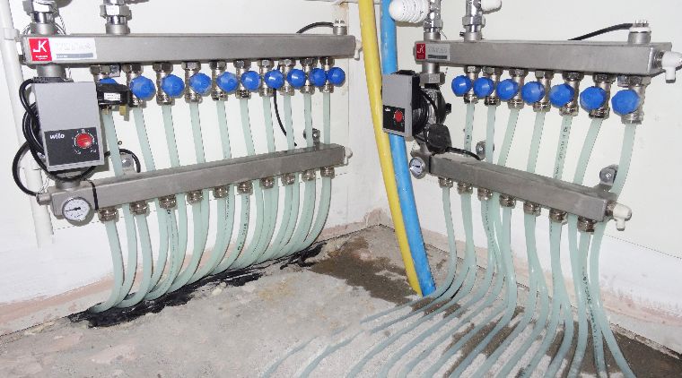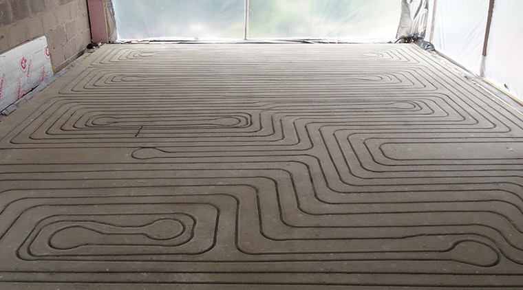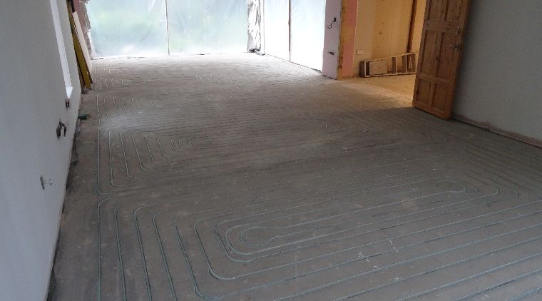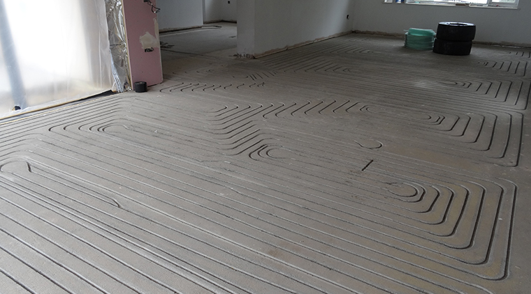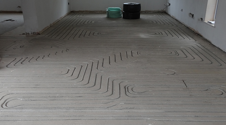 ‘The ground floor covers about 140 square metres, divided into 7 zones, and is completely fitted with a JK in-ground UFH™ eco-friendly water underfloor heating system.’