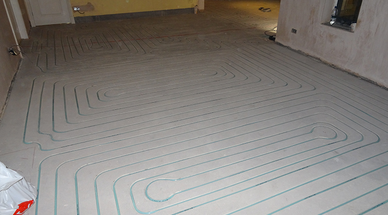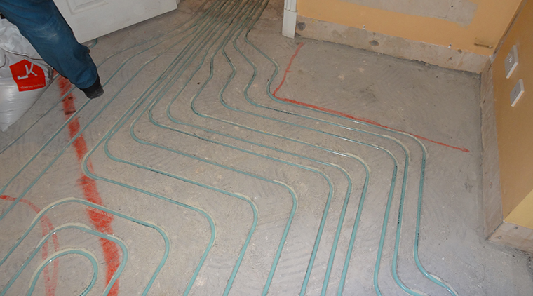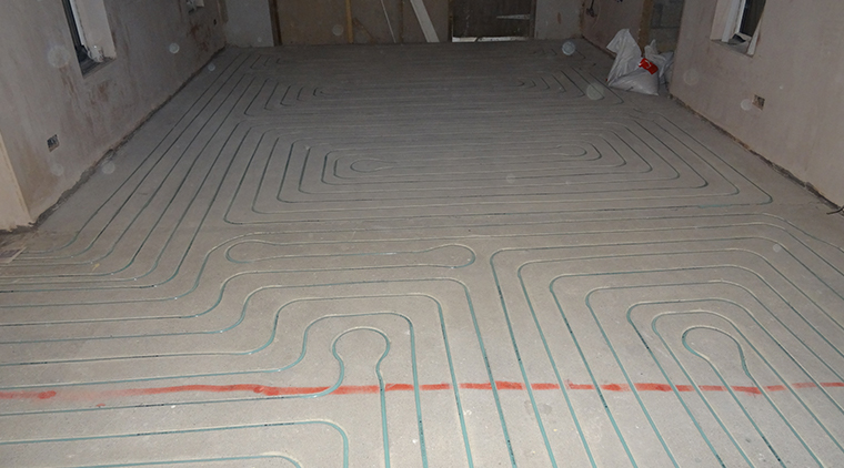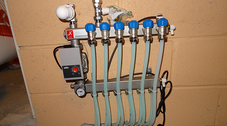 ‘The floor construction in the extension is leveled at the same height as the existing part and JK’s in-ground UFH system is installed into both areas.’