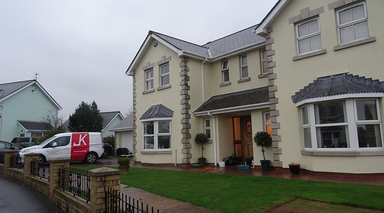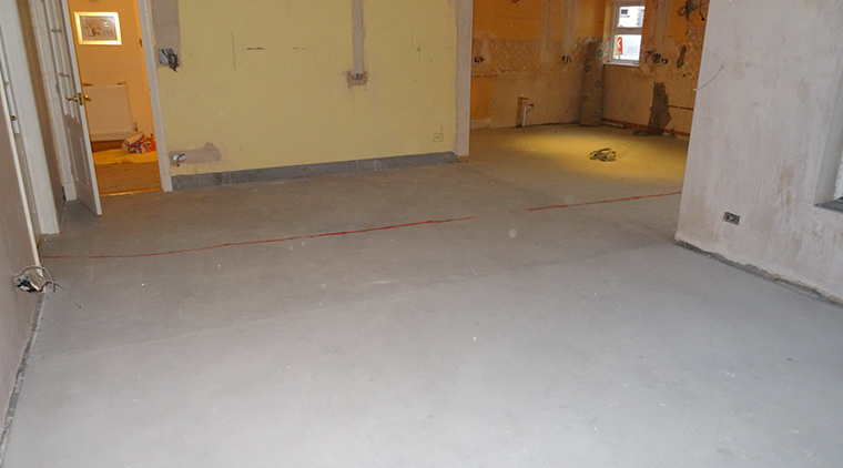A very spacious detached family size home in Bridgend, in a quiet cul-de-sac location. The extension at the rear of the house and a new kitchen with lounge and dining area brought up the idea to install a water underfloor heating system in both the existing part of the property and the new extension. The floor construction in the extension is leveled at the same height as the existing part and JK’s in-ground UFH system is installed into both areas, divided in two zones. James Oliver Kitchens has designed the extension and installed a new kitchen.