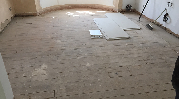 The floor area covers 85 square metres and is completely fitted with a eco-friendly warm water underfloor heating system of JK as primary heat source. To improve the thermal and acoustic values of the property high quality Fermacell product was used.